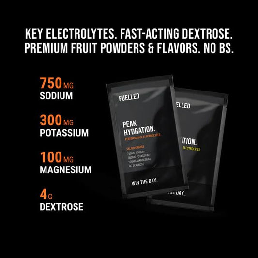 Fuelled Peak Hydration Electrolytes – Salted Orange Flavour (300g | 30 Sachets)
