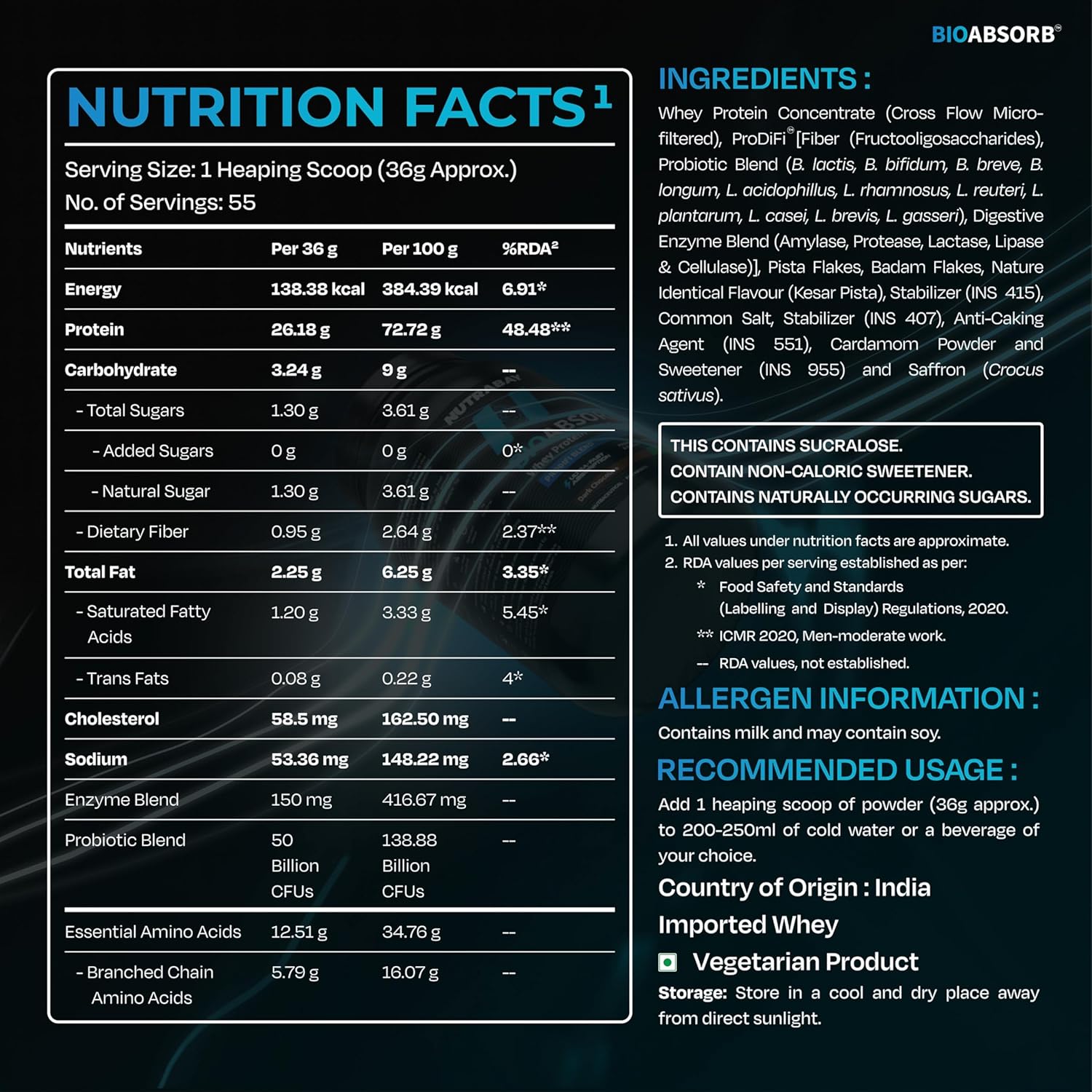 Step into the future of fitness with Nutrabay BioAbsorb™ Whey Protein, India’s first-ever whey formula enhanced with the patent-pending ProDiFi™ Blend – a breakthrough combination of probiotics, digestive enzymes, and dietary fiber for superior digestion, absorption, and results.