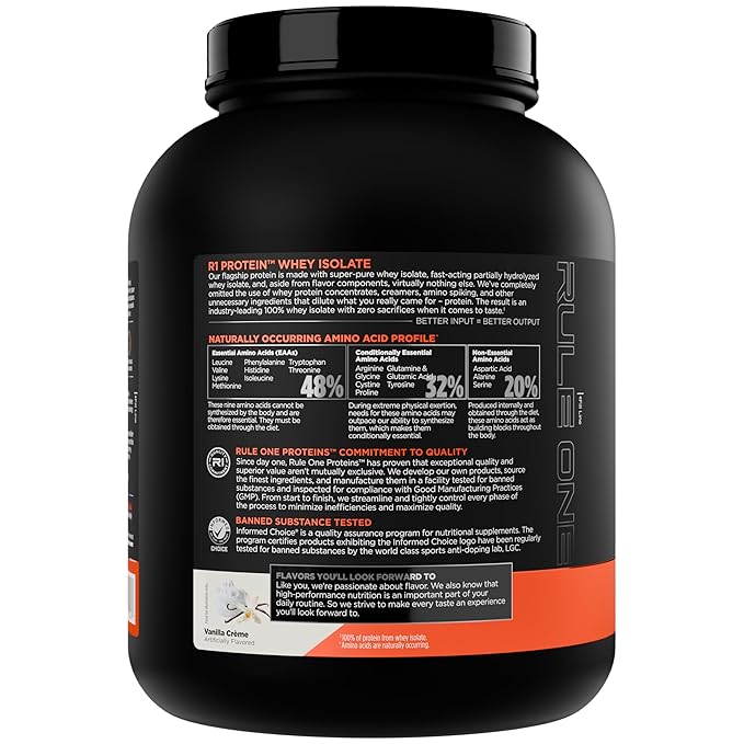 Fuel your performance with Rule 1 R1 Protein, a premium 100% whey isolate and hydrolysate formula designed for athletes and fitness enthusiasts who demand purity, quality, and great taste. Each scoop delivers fast-absorbing protein to support muscle growth, recovery, and lean muscle maintenance—without unnecessary fillers.